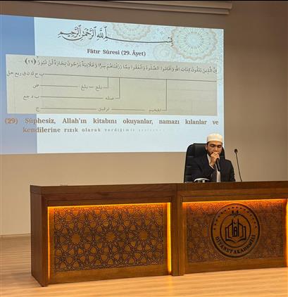 Prof. Dr. Kahraman, “Din Hizmetlerinin Verimliliği ve Yetişmişlik” başlıklı konferansta ihtisas kursiyerleri ve aday din görevlilerine hitap etti. Konferansta din hizmetlerinde ilmî donanımın, güçlü temsil kabiliyetinin, sahada karşılaşılan sorunlara doğru yaklaşım geliştirmenin ve sürekli kişisel gelişimin önemine dikkat çekti.